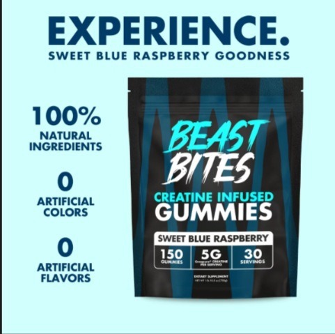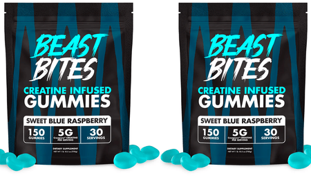 Beast Bites Creatine Infused Gummies – Sweet Blue Raspberry • 150 Gummies | 30 Doses (5 g Creatina Creapure®)